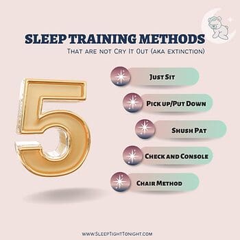 Nope! It is a method that works when executed properly. But it is not for every family. I support families who choose to use this method. No judgment from me. There are several other methods and I help parents choose the right option for their family dynamics and parenting style. Depending on your child’s age and temperament, there are several options we can look at. These are the 5 main methods, although for the older toddlers already in a bed there are more options like Kissing Game, Bedtime Passes, and more!